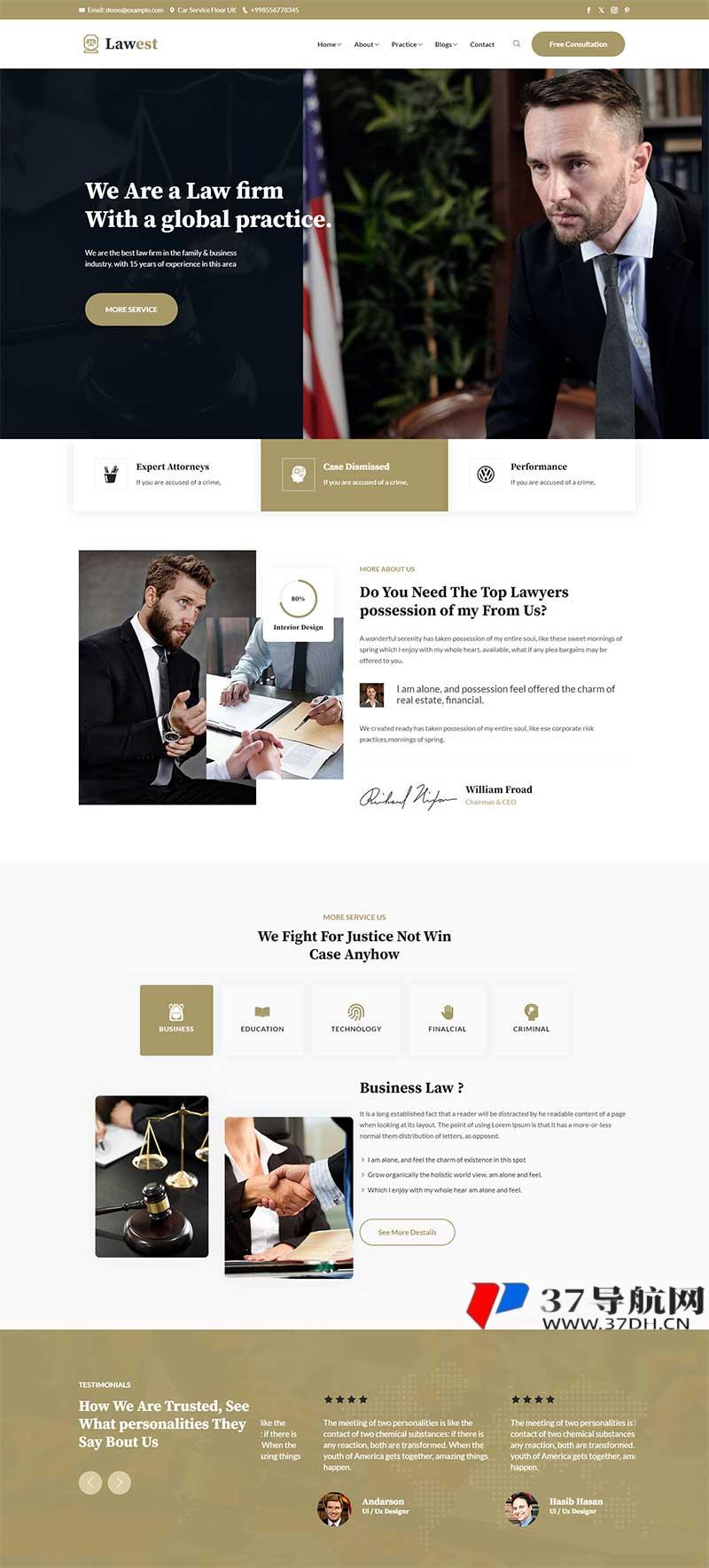 ,适应不同屏幕,呈现业务领域和律师团队,氛围严谨,帮助律师事务所有效树立专业形象 。
