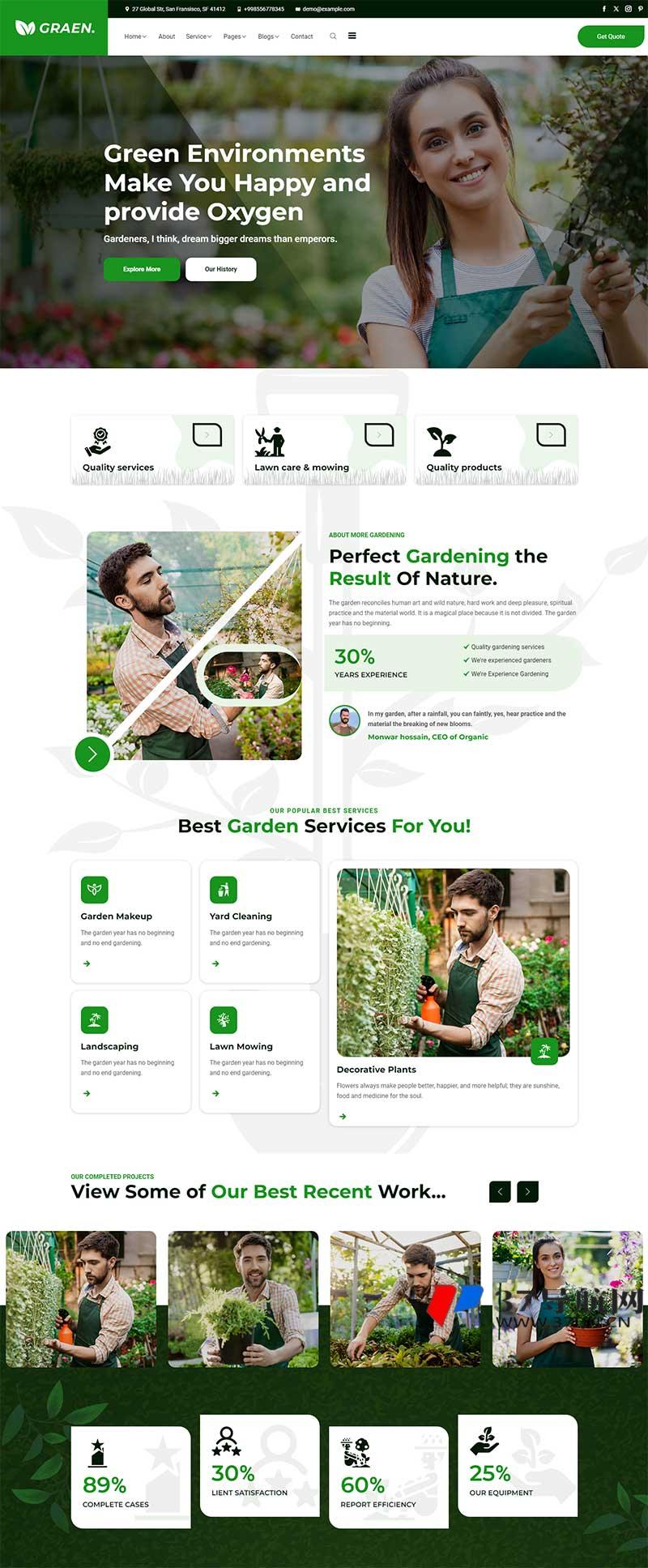 响应式绿色园林花卉艺术前端网页模板将自然绿色融入设计,