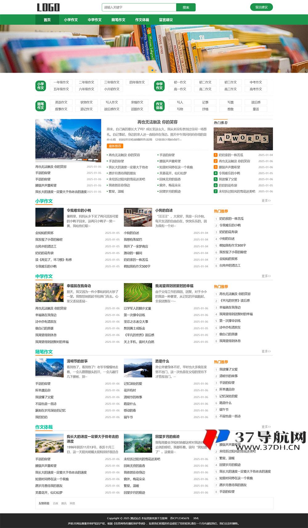 适用于作文、美文网站,以PbotCMS为基础,灵活调整适用于各行业。