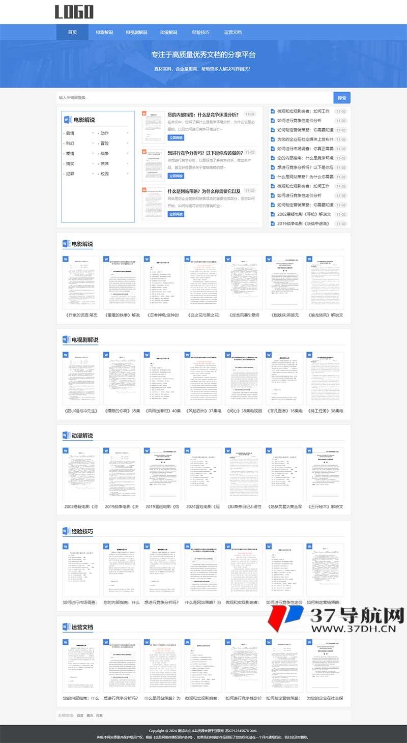 PbootCMS核心开发的网站模板适用于电影解说文案网站、word资源网站等企业,也可以改为其他行业,只需更换文字图片即可;