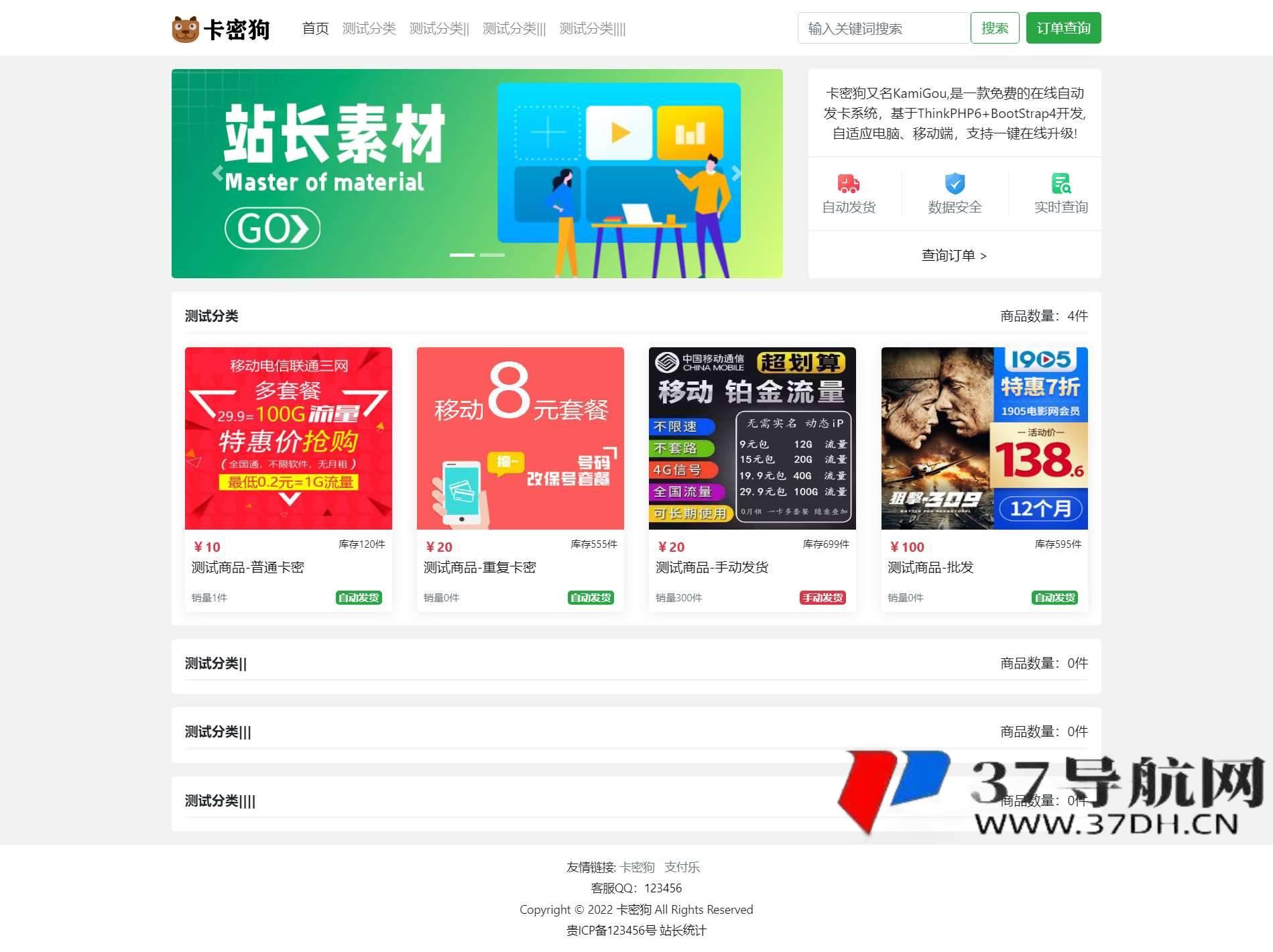 基于ThinkPHP的开发 6.Bootstrap 4卡密狗PHP自动发卡系统,具有自适应计算机和移动终端的特点,并支持一键在线升级功能。