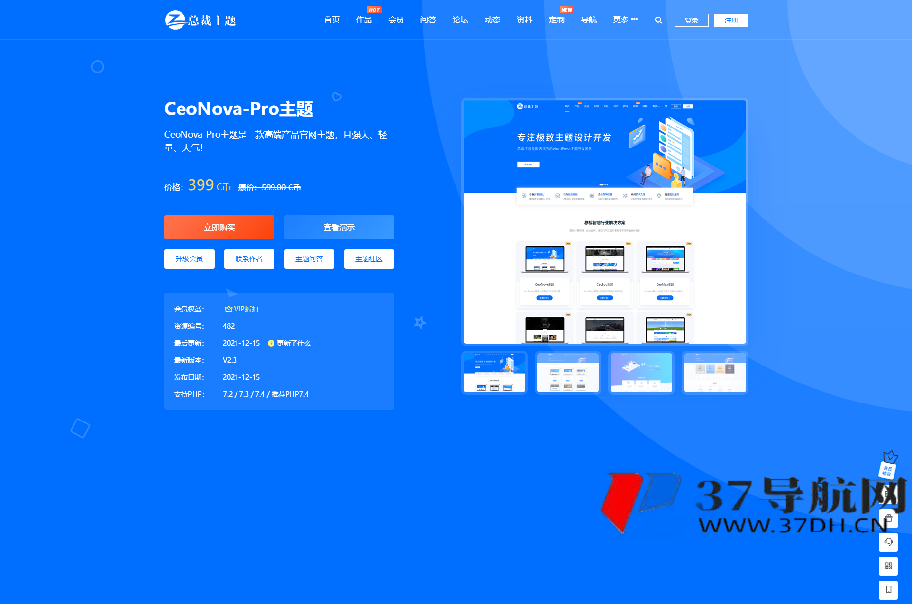 WordPress资源产品展示主题 “CeoNova-Pro_v4.4 开心版” 是专为高端产品官网设计的轻量级、简约大气的主题。全面覆盖知识付费、定制服务、问答社区、论坛交流、网站导航、付费产品采购下载等多种功能,满足不同业务需求。